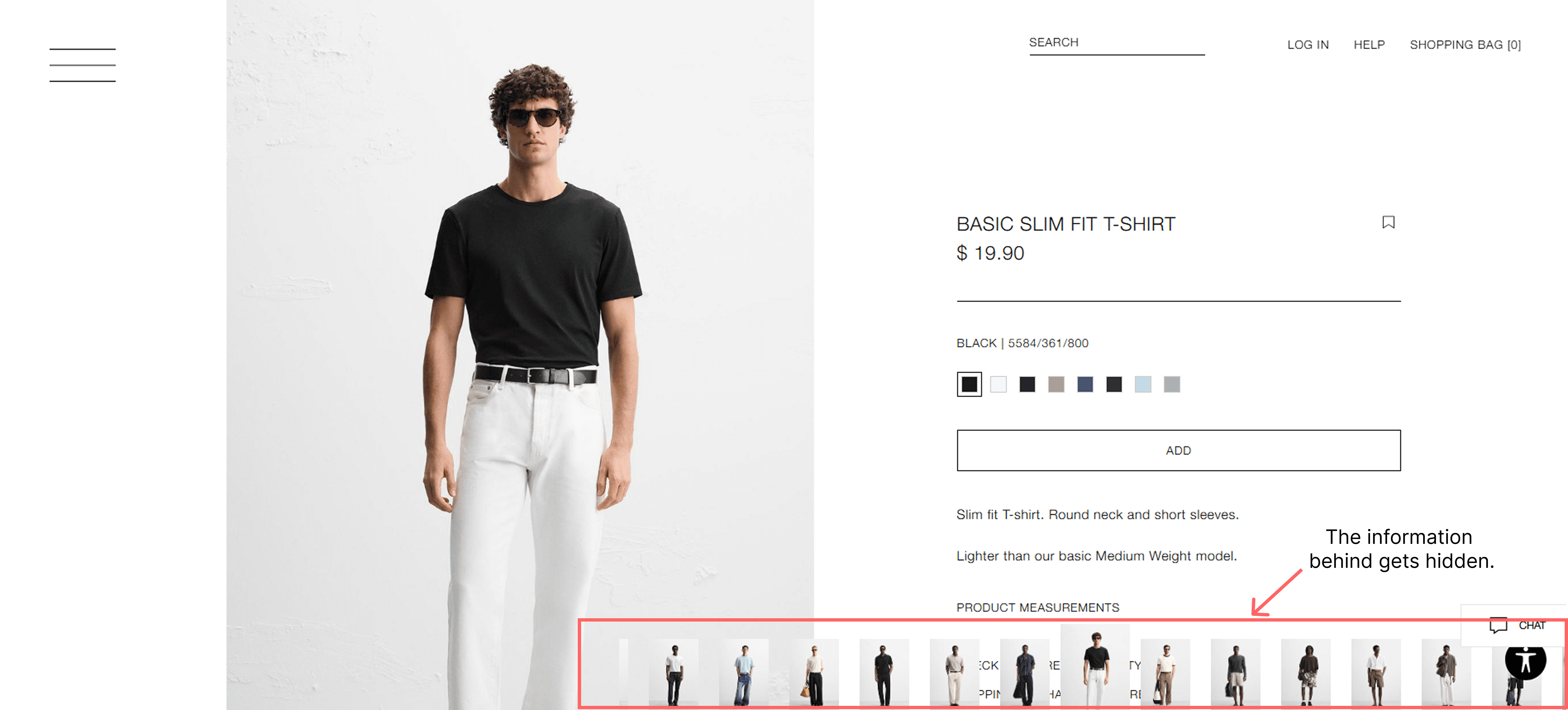 Consistent product layout with easily accessible selected product details such as Size, Color and Saving the product.